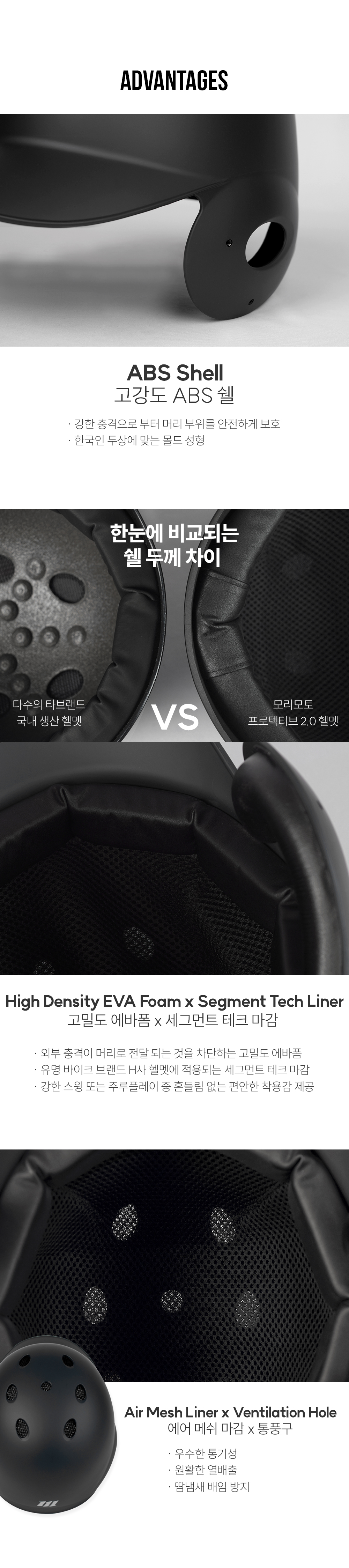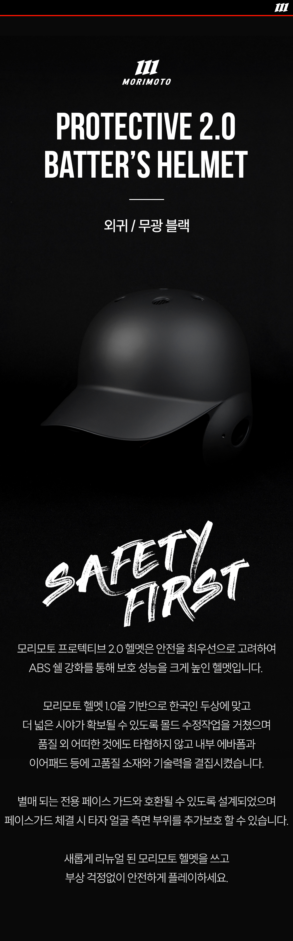 헬멧 > 모리모토 프로텍티브 2.0 경식 타자 외귀헬멧 (무광 블랙)