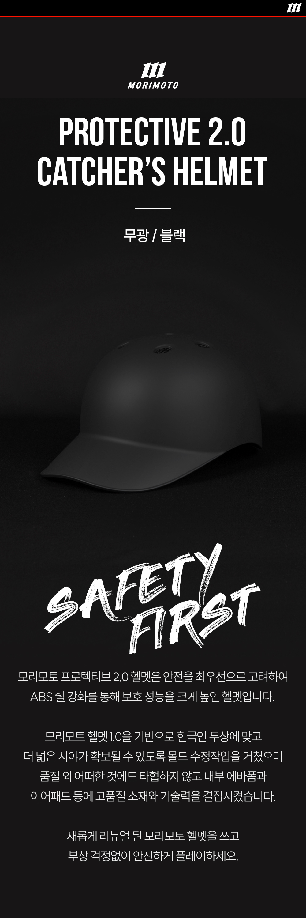 헬멧 > 모리모토 프로텍티브 2.0 경식 포수 헬멧 (무광 블랙)