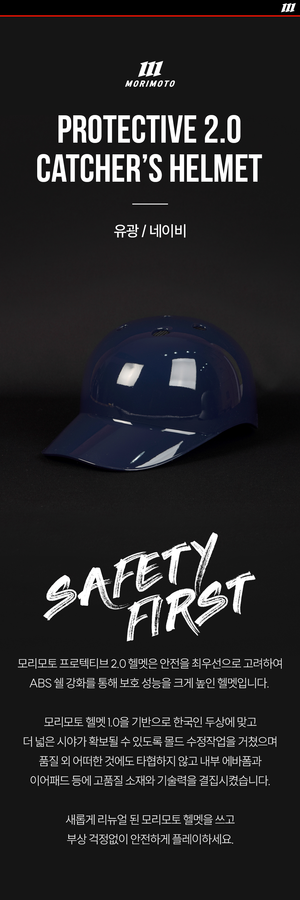 2. 포수헬멧 > 모리모토 프로텍티브 2.0 경식 포수 헬멧 (유광 네이비)