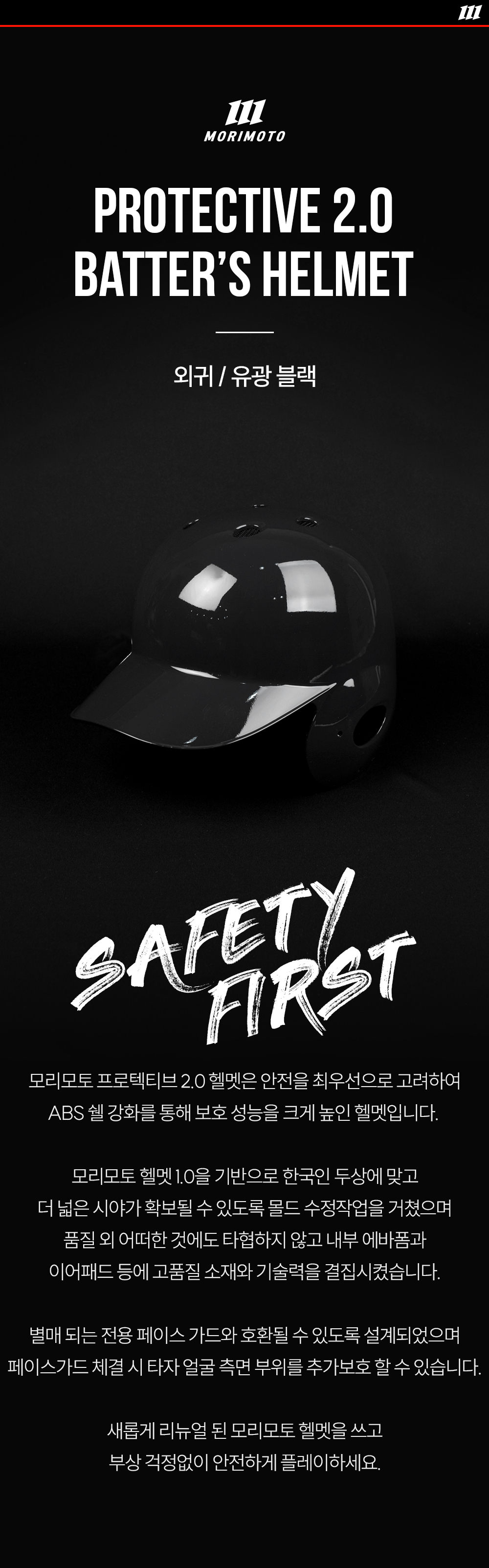 헬멧 > 모리모토 프로텍티브 2.0 경식 타자 외귀헬멧 (유광 블랙)
