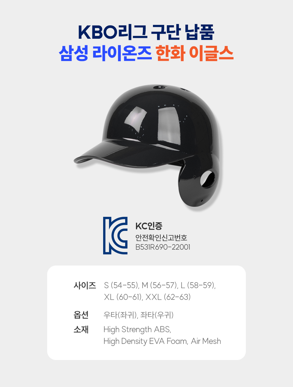 2. 헬멧 > 모리모토 프로텍티브 2.0 경식 타자 외귀헬멧 (유광 블랙)