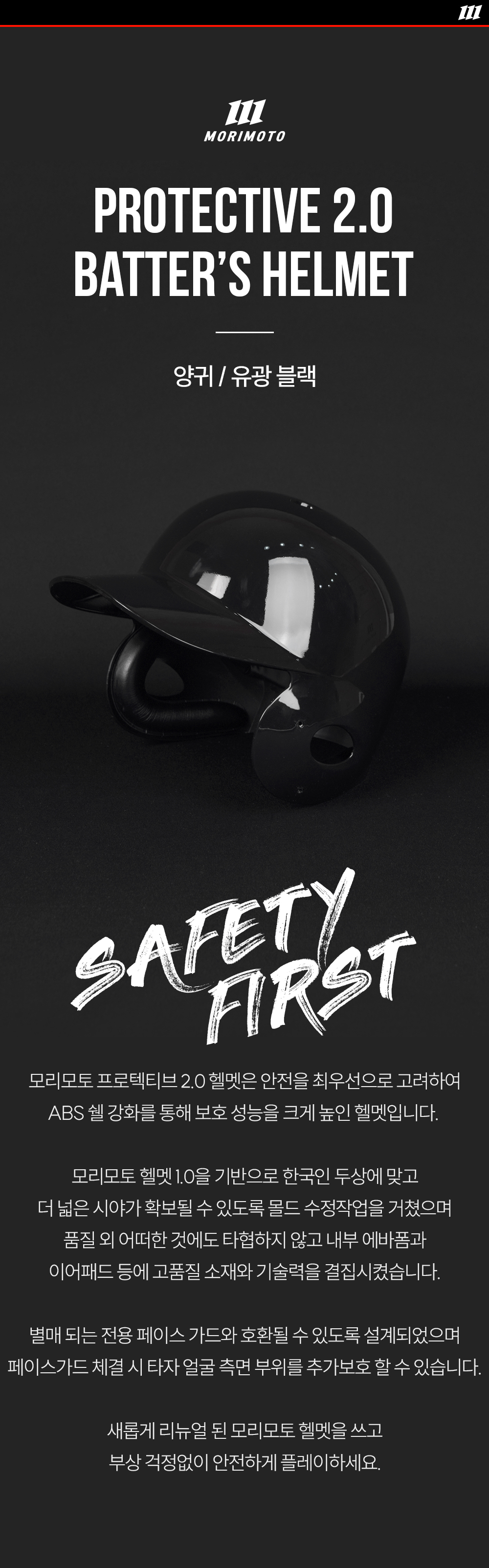 2. 헬멧 > 모리모토 프로텍티브 2.0 경식 타자 양귀헬멧 (유광 블랙)