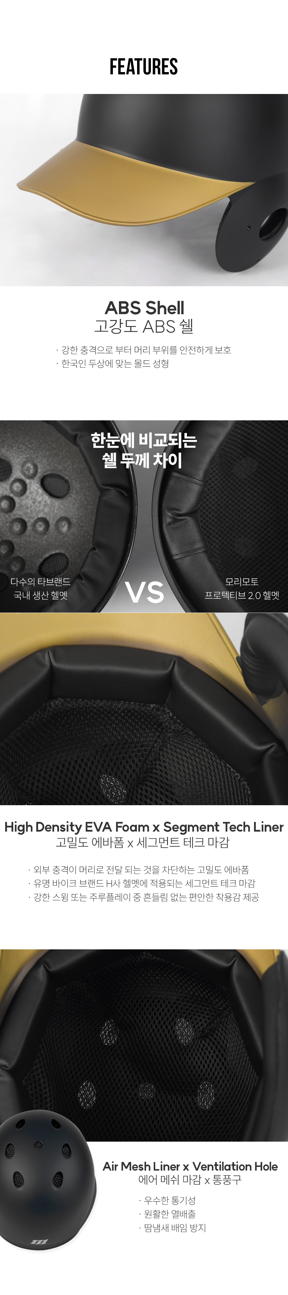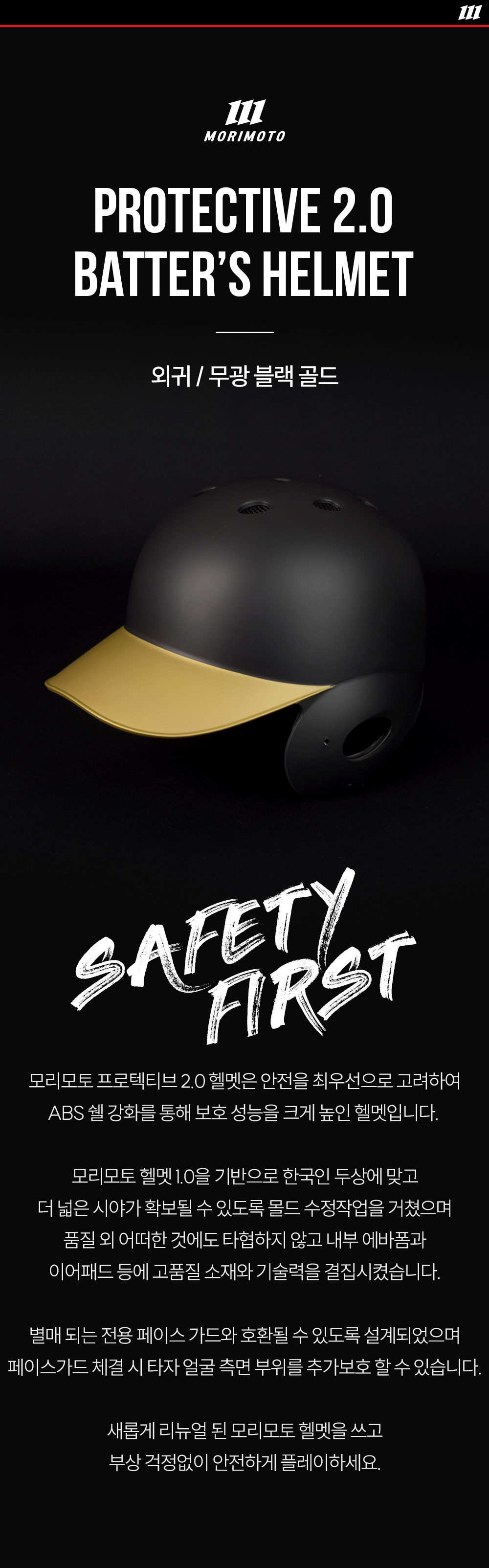 2. 헬멧 > 모리모토 프로텍티브 2.0 경식 타자 외귀헬멧 (무광 블랙골드)